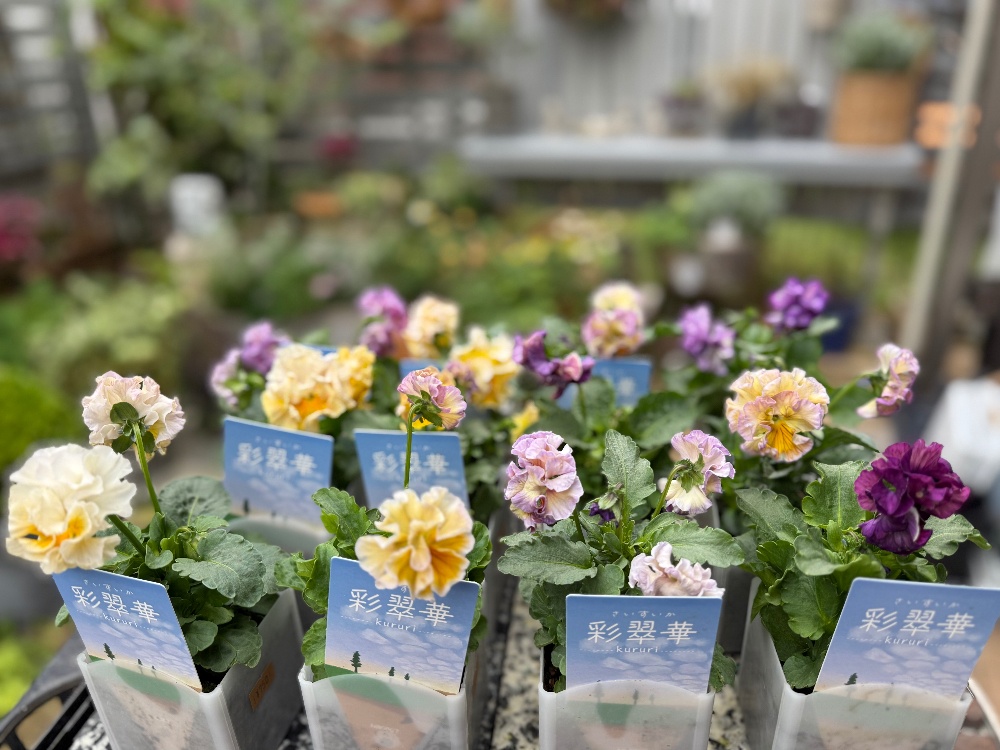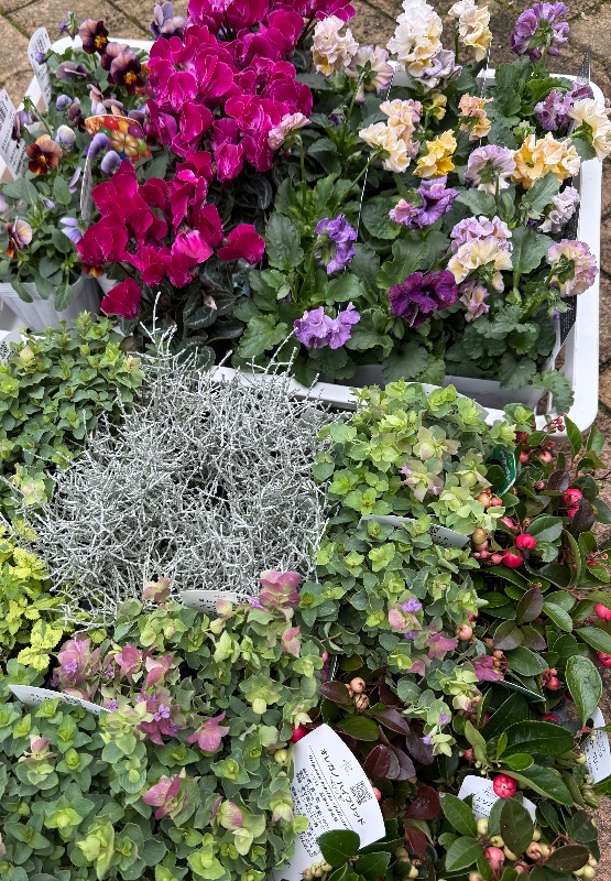 今日から寒くなりましたね昨日のワークショップの方々は来月からもっともっと可愛い子が入荷しますので楽しんでください今日は、28日花苗入荷しましたワークショップと販売用になります彩翠華 kururi 新品種ガーデンシクラメンビアード新品種ビオラネオンモモカオレアリアアフィンオレガノベリシモバコバライムバリエガーターゴールテリアビックベリーこの中からセレクトして秋の草花と組み合わせます